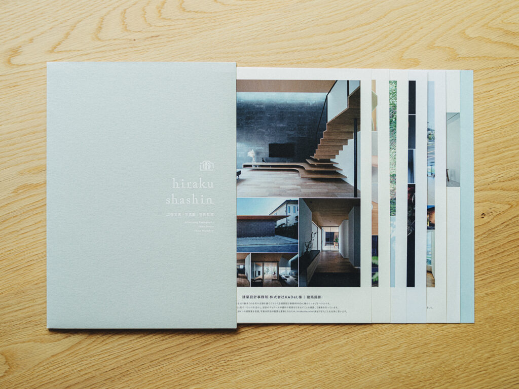 合同会社hirakushashinさまは、大阪府茨木市にあるフォトスタジオです。大手企業などの撮影にフォトグラファーとして携わってきた森脇さんは、現在合同会社hirakushashinとして広告写真を中心にファミリーフォトや写真教室の開催をするなど、写真にまつわるさまざまな活動を展開されています。ミトネデザインでは、ポートフォリオの制作をお手伝いしました。