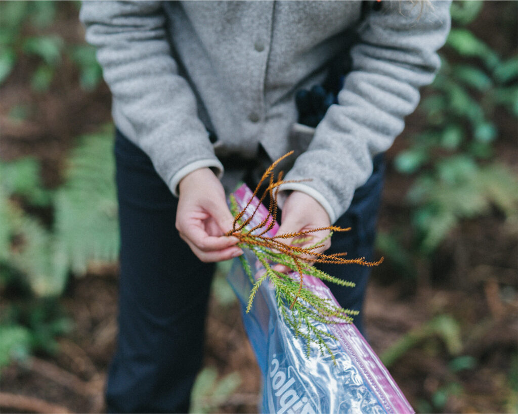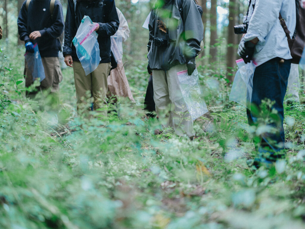 社員の方々や学生が参加し、自然物の観察や採取を行うフィールドワークに同行。スチールとムービーの両面から、研修のプロセスを記録しています。森の中での真剣な眼差しや対話の様子など、その場の空気感を損なわないよう丁寧に撮影を行いました。