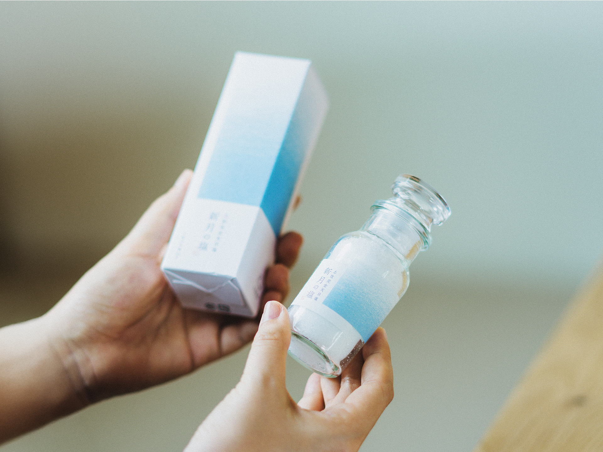 品質はそのままに、日常でも取り入れやすい価格で。そして、業務用では実用的なパッケージが主流の中、月海製塩さまの「贈り物にも選ばれるような、上質なパッケージを届けたい」という想いを出発点に、ブランディングに取り組みました。
